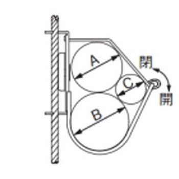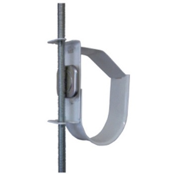 冷媒配管用の吊金具。配管3本を全ねじの中間に取り付けるための支持金具。軽天を利用して天井裏の配管保持に使えます。回転体をねじ方式で固定。セーフティークリップと全ねじ棒の固定用のばねとが一体となり、安全性及び作業性が良い製品です。バンド取り付けと同時に、セーフティクリップにより自動的(反発的)にロックします。W3/8全ねじ棒だけでなく、8mm・9mmの丸棒にも取付固定できます(最大荷重は12kgまで)。エポポリ樹脂粉体塗装。【目安サイズ】保温材厚20×20×10mm(3本時):Φ31.75×Φ38.1×Φ19.05mm。