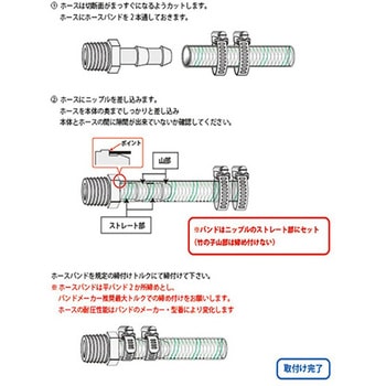 二ップル部が長く、ホ-スバンド2本締めが可能。フラット2段構造により、バンドの締め付け面積が大きくホ-スをしっかり固定する事が可能。欧州RoHS指令を指針としたカドミレス対応( カドミウム75ppm以下)。RoHS2対応品。
