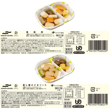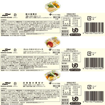 1点のみご購入の場合は、セット商品のみで梱包してお届けします。複数個購入や他の商品と一緒にご購入いただいた場合は、同梱してお届けすることがあります。【[冷凍] マルハニチロ やさしいおかずセット】シリーズから、朝のムース食 鮭の塩焼き 1食分/朝のムース食 オムレツのトマトソース 1食分/朝のムース食 さわらの柚庵焼き 1食分/朝のムース食 白身魚の煮付け 1食分/朝のムース食 筑前煮 1食分/朝のムース食 たまごと小松菜のソテー 1食分/朝のムース食 蒸し鶏のごまソース 1食分を各1個計7個を詰め合わせております。