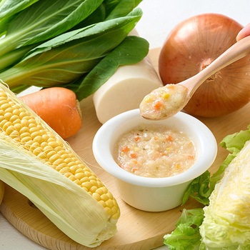 温めてお召し上がりいただく場合は温度を確認してからお子さまにあげてください。月齢は目安です。焦らず段階的にお子さまの食欲や成長にあわせてご利用ください。食べ残しや作り置きは与えないでください。離乳の進め方については専門家にご相談ください。解凍後は再凍結しないでください。解凍後や開封後はお早めにお召し上がりください。