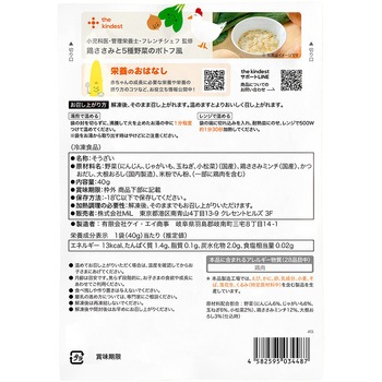 離乳食中期の7~8ヶ月頃から利用できる冷凍ベビーフードです。鶏ささみのミンチと5種野菜のみじん切りをまろやかなポトフに仕上げました。1袋が1食分の目安量になっています。