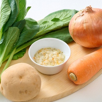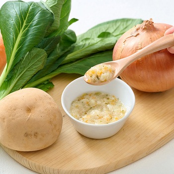 温めてお召し上がりいただく場合は温度を確認してからお子さまにあげてください。月齢は目安です。焦らず段階的にお子さまの食欲や成長にあわせてご利用ください。食べ残しや作り置きは与えないでください。離乳の進め方については専門家にご相談ください。解凍後は再凍結しないでください。解凍後や開封後はお早めにお召し上がりください。