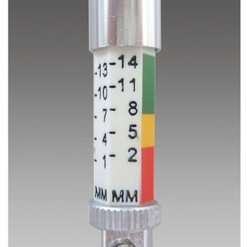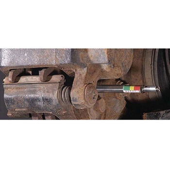 ブレーキパッドの残りの寿命が分かります。ほとんどの場合において、部品の取り外しなしで測定ができます。色の表記により、一目でブレーキパッドの状態がわかります。警告範囲 緑色(8mm以上):交換の必要はありません、黄色(3~8mm):交換を推奨します、赤色(0~3mm):交換時期です。