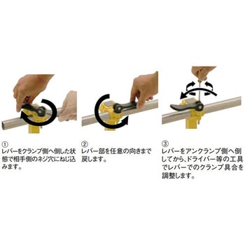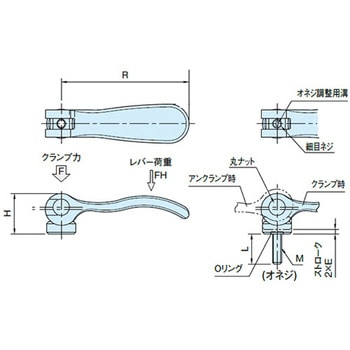 一度適正な量をねじ込めば、レバーを倒したり起こしたりする操作のみで、クランプ・アンクランプが行えます。オネジ回転タイプはネジ部が回転しますのでレバーの向きを任意調整できます。RoHS対応品。