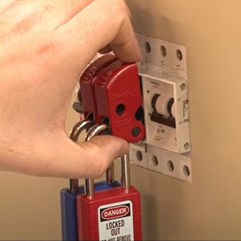 手で簡単に調整できるねじ仕様。ブレーカーなどのトグルに取り付け、元からロックアウトすることにより安全管理が可能です。近くに併設しているブレーカーでも並べて使用できます。外れ防止構造によりロック状態では、ねじが見えません。本体は化学物質への耐久性があるサーモプラスチックを使用。南京錠は縦・横どちらの向きでも取り付け可能です。