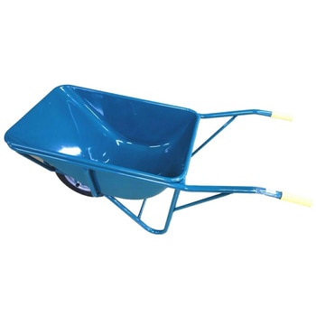 一般的な3切一輪車です。スチール製で、フレームとバケットが完全な溶接構造になっています。ノーパンクタイヤ付。