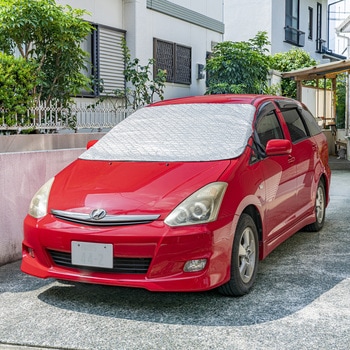 車のフロントガラスに被せることで、霜や雪による凍結を効果的に防げます。