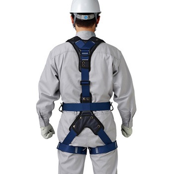 第一種ショックアブソーバ。巻取+伸縮式。背中のベルト長さを調整できるアジャスター付き。調整箇所が多いので、着用者の体形に合わせてぴったりとフィットさせることができます。動きの激しい作業でも緩みにくく、さらに耐久性に優れた金属製の胴ベルトアタッチメントを採用したプロ仕様。肩パッド、腰パッドを標準装備し、重量物を運んだり、重い工具をつけた時の身体への負担を軽減します。厚生労働省「墜落制止用器具の規格」適合品。