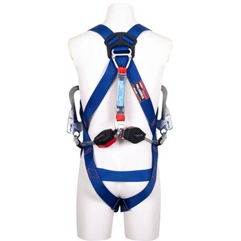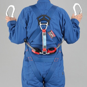 ワンタッチ式バックル。軽量・小型の巻取式ランヤード付き。第一種ショックアブソーバ付き。ロック機構付で墜落時にも最短距離で停止します。常時巻取りのためランヤードを常に張った状態で使用できます。アルミフック。巻取式。必要最小限のベルト構成のシンプル設計。装着性が向上し、抜群の動きやすさを実現。ベルト色は視認性の高い明るい青色。フックハンガー2個付き。改定規格適合品。