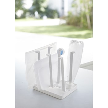 滑り止めキャップ付きで、グラスをキズつけず、立てて干すことができます。水受けトレー付きでキッチンカウンターやシンク周りに設置できます。コンパクトサイズで場所も取りません。水受けトレーは取り外し可能でお手入れもラクラク。なべ蓋・まな板・フライパンなども立てられます。ペットボトル・食品トレー・チャック付き保存袋のリサイクル水切りとしてもご使用いただけます。対応サイズ:Φ70mm、高さ150mmまでのグラス。