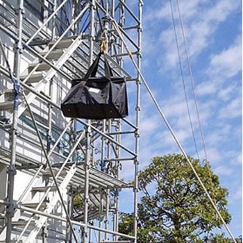 足場手摺の荷揚に特価したバッグです。自立するため荷物の出し入れがスムーズに行えます。底面はPVCコートのPP板を採用で突破り事故のリスクを軽減します。横入れで使えば手摺に最適サイズです。折り畳みが可能で持ち運びがラクラク。