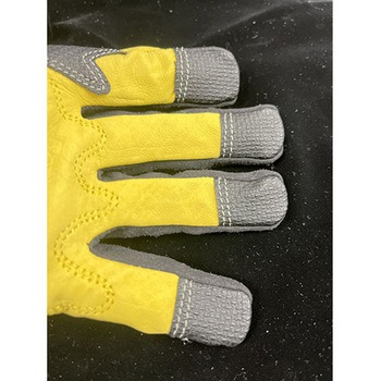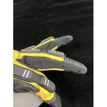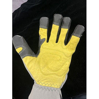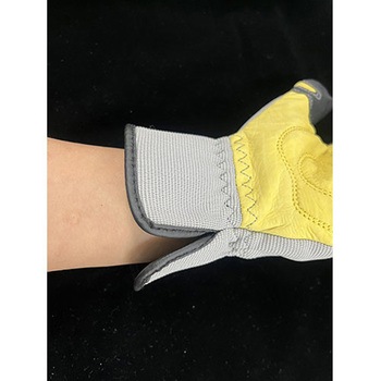 安全性重視の手袋です。手の甲(指部分)はクッション装備でしっかりプロテクトします。通気性があり、むれません(指の両サイドに通気孔あり)。手の平の牛革は吸汗性があり作業中滑りにくく、しなやかで強力です。指先には滑り止めの補強がされています。手袋の口にはスリットが設けられ着脱がしやすくなっています。