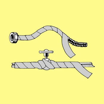 冷凍・冷媒、冷水・温水パイプ用に開発された独立気泡構造の軽い柔軟な特殊エラストマー(EPDM合成ゴム系)で作られています。高温パイプの熱の損失を防止し、冷媒、冷凍パイプの結露を防ぎます。表面が特殊コーティングされているため長寿命です。どんな金属にもしっかりと接着してはがれません。フレキシブルなパイプにも、最適な粘着力で取り付けが容易です。耐候性・耐紫外線性、耐湿性・防カビ性、耐火性・低発煙性、耐酸・アルカリ性、柔軟性を有しています。屋外での使用にもバツグンの耐久力で使用できます。使用方法 1.パイプ・バルブ部品をきれいにしてください。2.水分、油、埃、錆を完全に落としてください。3.テープの紙をはがしながらパイプや部品に螺旋状に巻いてください。4.強く押えてください。テープを伸ばさないでください。
