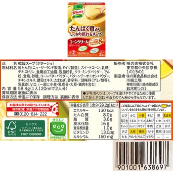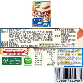 1点のみご購入の場合は、セット商品のみで梱包してお届けします。複数個購入や他の商品と一緒にご購入いただいた場合は、同梱してお届けすることがあります。味の素 クノール たんぱく質がしっかり摂れるスープ コーンクリーム 2袋入 58.4g×5個/味の素 クノール たんぱく質がしっかり摂れるスープ ポタージュ 2袋入 52.2g×5個/を詰め合わせております。