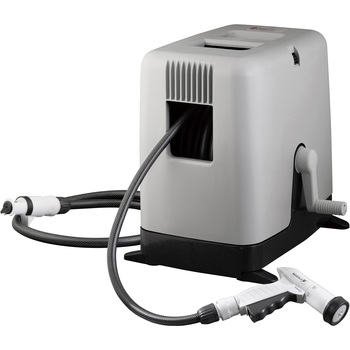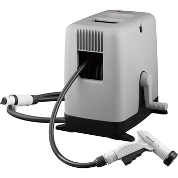 日差しからホースを守る着脱可能なカバー付です。ねじれに強いツイスターホースを採用しています。自由自在の通水エルボによりハンドルの向きを自由自在に変更できます。通水・止水がワンクリックで操作できます。水の出方が5種類に変わる散水ノズルです。
