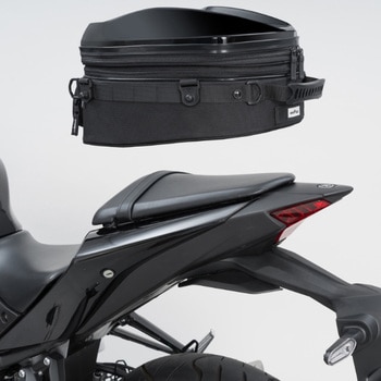 リアシートの限られた積載スペースを最大限活かす、大容量のシートバッグ。少し余裕を持たせた底面形状で広い開口部、