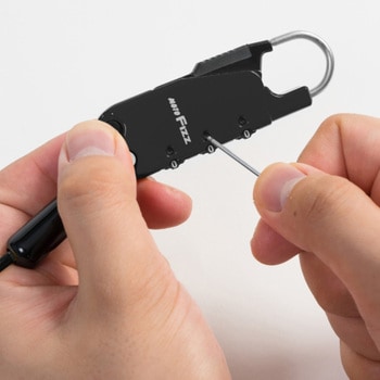 ファスナーのロック穴に合わせたツル部(ひっかける部分)形状により、バッグの開口部に施錠できます。