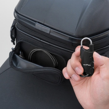 3ロックでバッグのファスナーに施錠すれば、バッグ本体の取り外しを防ぎつつ、バッグ開口部の施錠ができます。