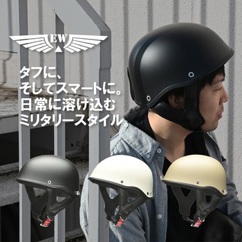 軽量ABS帽体とPVCレザー製イヤーカバーを採用し、快適な装着感とスタイルを両立したハーフヘルメット。