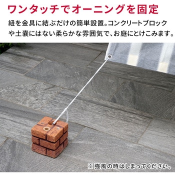 紐を金具に結ぶだけの簡単設置。コンクリートブロックや土嚢にはない柔らかな雰囲気で、お庭にとけこみます。