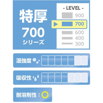 大量使用に便利な大容量ロールタイプ。特厚タイプ。ポリプロピレン繊維とセルロース繊維を高圧噴射で織り込んだ溶剤に強いワイパーです。繊維くずが出にくくなっています。ちぎりやすいミシン目入。溶剤の拭き取りや表面が粗い場所の拭き取りに。壁掛け型ディスペンサー(EA929AC-201)・フロアスタンド型ディスペンサー(EA929AC-202)に取り付けて使用可能。