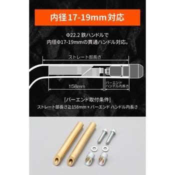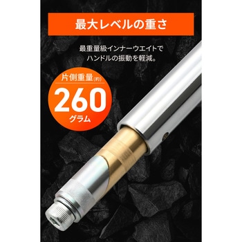 真鍮素材を使用した超ヘビータイプのインナーウエイト。片側約260gの重量により、ハンドル内部に装着することで走行時に発生する微振動を低減します。内径17-19mmの貫通ハンドル対応で、各種バーエンドの取り付けが可能。