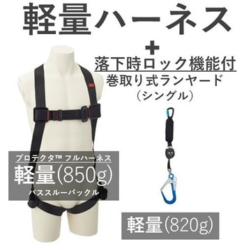 万一の落下時には、衝撃がかかるとすぐに巻取り器にロックがかかり、落下距離を短く抑えます。