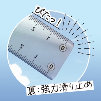 表は光沢クリアのツヤタイプ、裏は超強力な滑り止めタイプで定規のズレを防ぎます。