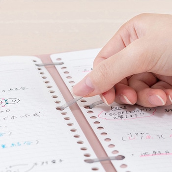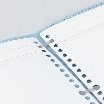 筆記時に手に当たっても気にならない独自開発の超薄型綴具「フラットバー」を採用しました。