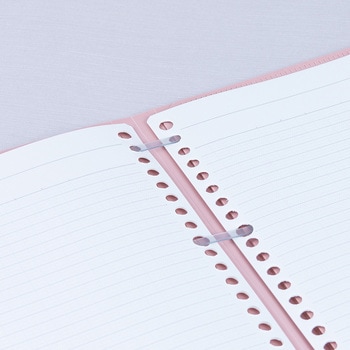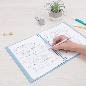 筆記時に手に当たっても気にならない独自開発の超薄型綴具「フラットバー」を採用しました。