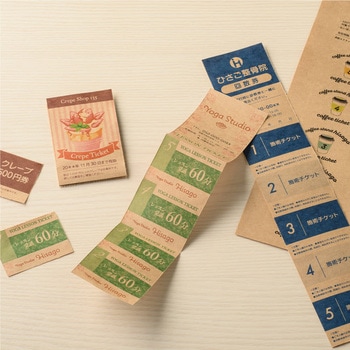 印刷してから切り離すだけ!綴りタイプのチケット・回数券を少量から作成できます。ドリンクチケットやレッスンチケット、サロン回数券・施術券、クーポン券などにおすすめの6枚綴りタイプ。