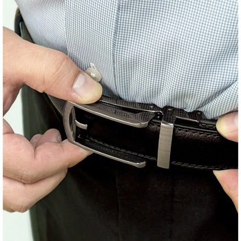 ワンタッチで自分サイズに微調整!穴がない無段階調整方式のベルト。
