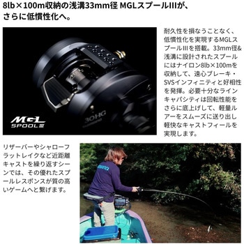 カルカッタコンクエストシャローエディションは、ナイロン8lb-100mキャパシティ、33/19mmMGLスプールⅢのシャロースプールを搭載。
