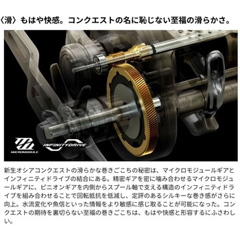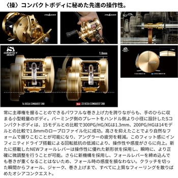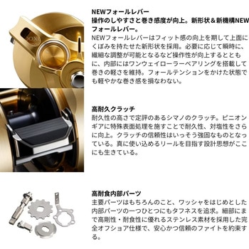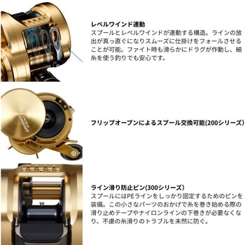 精密なマイクロモジュールギアと堅牢なHAGANEボディ、高耐久の内部パーツが一体となって生み出される滑らかで力強い巻き上げ。その性能をさらなる高みへと引き上げるべく、インフィニティドライブを搭載して巻きの軽さ、力強さとともに感度も向上。Xプロテクトを搭載することで防水性能・耐久性も高めました。新形状NEWフォールレバーは仕掛けの沈下速度をすばやく正確に制御。ワンウェイローラーベアリングの搭載で巻き取り方向では回転が重くならない画期的なオリジナル機構を搭載。200サイズはボディを前作よりコンパクト化し、レベルワインド連動モデルとしては初となるフリップオープン搭載でスプールへより簡単にアクセスすることが可能になりました。