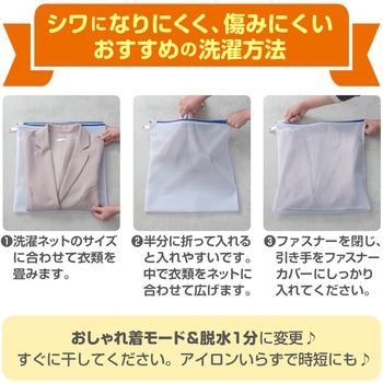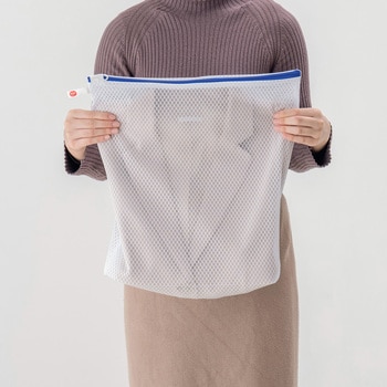 厚物衣類1枚洗い推奨ネット。厚手のジャケット、スウェット1セットなどに。型崩れや洗濯シワを抑えます。YKKファスナー使用。ファスナーが開けやすい大きな引き手。掛けて収納しやすいループ状のネームタグ付き。