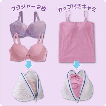 ブラジャーネット専用ネット。Hカップまで対応サイズ。デリケートなブラも傷まず形状キープ、やさしく洗う。クッションメッシュ使用。YKKファスナー使用。ファスナーが開けやすい大きな引き手。
