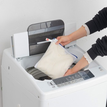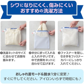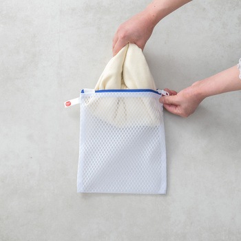 こだわり洗いの1枚入れ推奨洗濯ネット。薄手のニット、薄手長袖シャツなどに。型崩れや洗濯シワを抑えます。YKKファスナー使用。ファスナーが開けやすい大きな引き手。掛けて収納しやすいループ状のネームタグ付き。