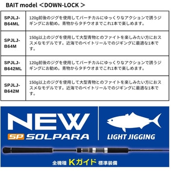 ベイエリアや近海でのライトジギングで狙えるターゲットは、青物・サワラ・根魚やタチウオ、どれも美味しいターゲットです。25ソルパラは、気軽に楽しめるライトジギングロッドとしてさらに進化!しなやかなブランクと、大物とも対峙できるバットパワーが、ライトジギングの手軽さと面白さを伝えてくれるはず、もっと気軽に身近な美味しいターゲットを狙って、美味しい魚を堪能していただきたい。