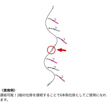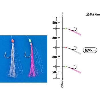 3本仕掛でトラブル軽減、手返し重視の専用仕掛!!その食味の良さから人気の高い、冬場のサバ釣り。ショートロッドでも扱いやすい3本タイプのショート仕掛ですが、連結することで6本仕掛としても使用できます。鈎はアピール力があり、魚を外しやすい長軸胴打ちタイプを使用しており、貴重なチャンスタイムを逃しません。泳がせ釣りで使う活サバを釣るためのサビキとしても最適です。