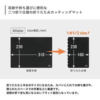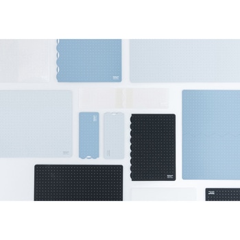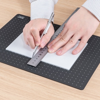 折りたたみカッティングマットシリーズにインテリアに馴染むミニマルデザインが新登場!盤面に、直角がわかりやすい格子罫線と、邪魔にならないドット罫線をいいとこどりをした「十字罫線」を採用。必要最低限のデザインでありながら、実用性も抜群です。持ち運びの際は、半分に折りたたんでコンパクトに持ち運ぶことができます。環境に配慮した「再生オレフィン系樹脂」を使用しています。