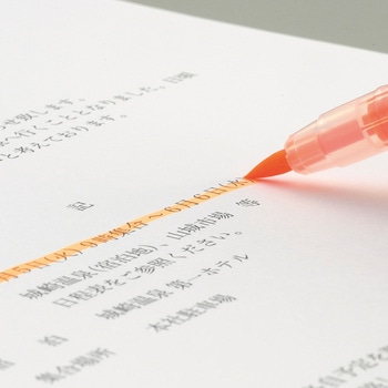 クリップ付き筆ぺんタイプの蛍光マーカー。筆ぺんタイプだから… 引きたい所だけサッ!思い切り、きれいにサッ!文字も書ける、チェックもサッ!