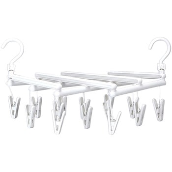 干す場所・干す物に伸縮自在に対応、長~く使って小さく収納、短いフックで竿にしっかり固定、低竿対応、長めの洗濯物も干しやすい、ピンチ14個付き