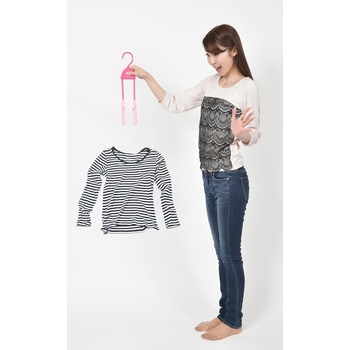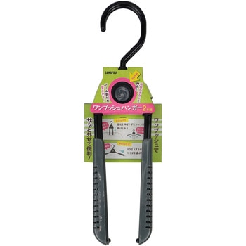 ワンプッシュでサッと外せて便利、首元を伸ばさず掛けられる、肩幅38~52cmまで幅広いサイズに対応