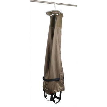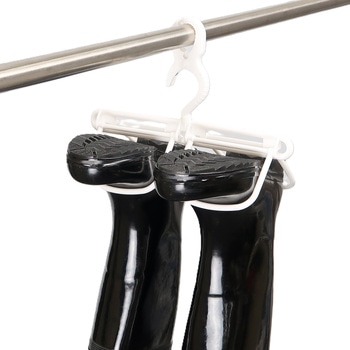 長ぐつの水切りと乾燥が同時にできる、竿やロープをしっかりつかむグリップ、便利な回転式フック、釣りなどに使うウェーダーにも