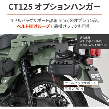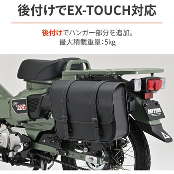 EX-TOUCH機構に対応した、ワンタッチサドルバッグを着脱するためのサドルバッグハンガー。本製品は、別売のサドルバッグサポート取付キット(品番:97014)との同時装着が必要で、組み合わせて使用することでバッグのタイヤへの巻き込みや車体への接触を防ぎます。