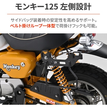 ワンタッチサドルバッグが装着できるサドルバッグサポート。サドルバッグの安定性を高め、タイヤへの巻き込みを防ぐサポートバー。リアタイヤへの巻き込みを防止し、走行中の不安や危険を解消。ベルトループ一体型で、別途サドルバッグハンガーを用意する必要なし。ベルトループはネット用のフックとしても使用可能。サドルバッグのベルト掛け内幅40mm、左右ピッチ190mm(センター間)、ベルトピッチ200mmのバッグに対応。別売のクラシックキャリア(品番:97773)同時装着可能です。