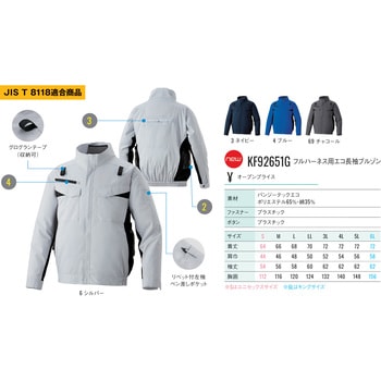 空調風神服 フルハーネス用エコ長袖ブルゾン(服のみ)(KF92651G)