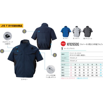 空調風神服 フルハーネス用エコ半袖ブルゾン(服のみ)(KF92650G)