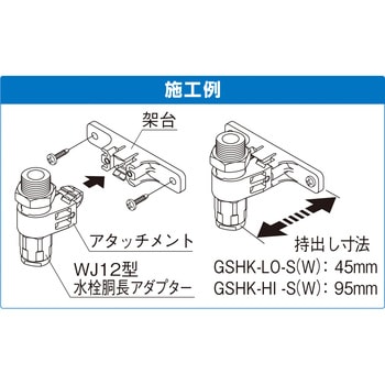 ・ダブルロックジョイントの水栓胴長アダプター「WJ12型」シリーズの支持に使用。