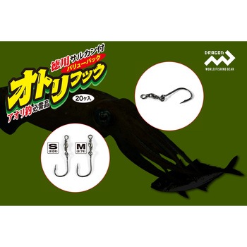 ヤエン釣りやウキ釣りでアジを泳がせるときに必要となるのが、このオトリ用フックです。背掛け、腹掛け、尾びれ掛け、チラシなど様々な掛け方がありますが、刺さりバツグンのdragon【徳用サルカン付オトリフック】があれば、この作業がイージーにスムーズに行えます。このフックはサルカン付で糸絡みしにくく、しかもカラーはイカに違和感を与えにくい黒メッキ仕様。20個入りのバリューパック!